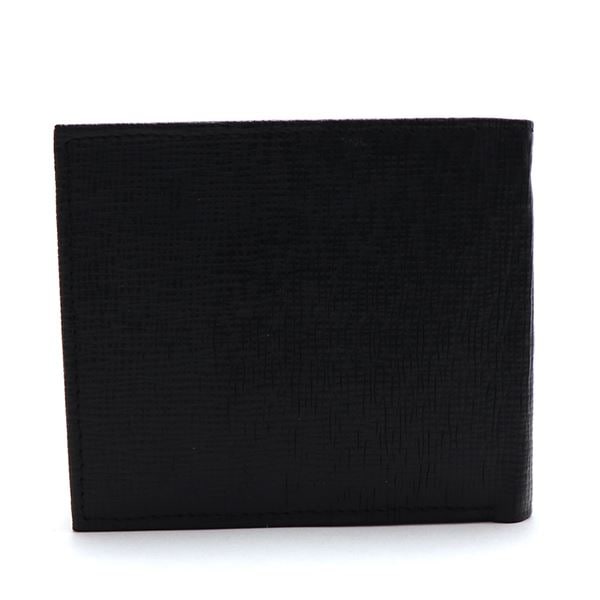 スキミング防止機能付きのシンプルなブラックのレザーがお洒落な二つ折り財布です。